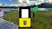 Hier stehen 102 Tische mit je 40 Solarmodulen. Das Zusammenspiel der neusten Generation von diesen Modulen, Stromrichtern und Speichermedien wird hier untersucht. Die Anlage stellt auch dem KIT Strom zur Verfügung.
